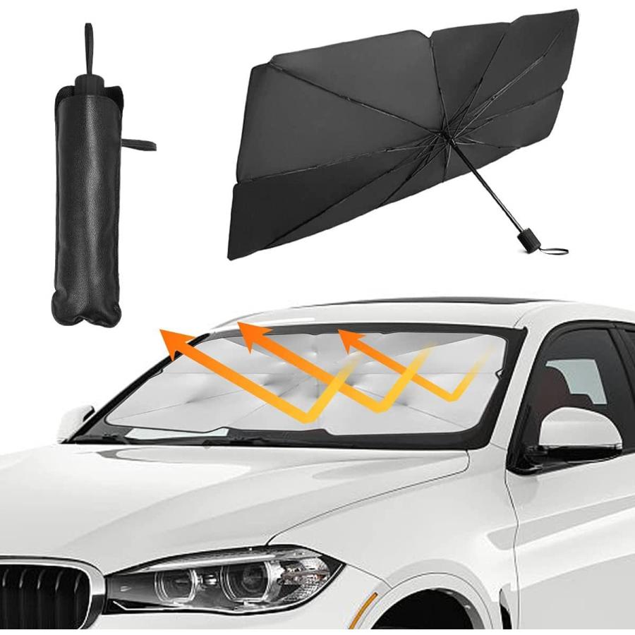 楽天市場 即納 車 サンシェード 傘 フロントガラス 折りたたみ傘 パラソル 傘型 フロントサンシェード 車用 日除け 日よけ Uv 紫外線カット 10本骨 コンパクト 紫外線対策 遮光 断熱 車サンシェード 車保護 車用 フロントカバー カーサンシェード 車種汎用 収納ポーチ